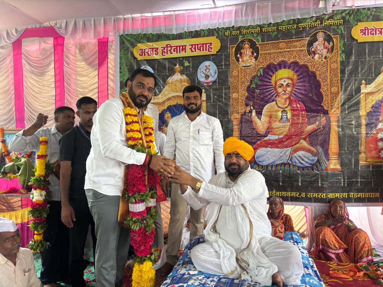 संगमनेर तालुक्यातील वडगाव पान येथील गडगे मळा (साईनगरमध्ये ) श्री संत शिरोमणी सावता महाराज पुण्य तिथीनिमित्त आयोजित अखंड हरिनाम सप्ताहाची सांगता रामायणाचार्य रामराव महाराजढोक यांच्या काल्याच्या कीर्तनाने व दहीहंडी फोडून करण्यात आली. या सांगता सोहळ्यात आ. खताळ बोलत होते.याप्रसंगी वडगावपानचे सरपंच श्रीनाथ थोरात मदन महाराज पारख , वसंत महाराज गुंजाळ , केदार भंडारी, अण्णासाहेब सदाफळ, ग्रामपंचायत सदस्य सुमित काशीद, गणेश काशीद, समीर मोरे, विक्रम ओहोळ यांच्यासह वडगावपान परिसरातील भावीक मोठ्या संख्येनेउपस्थित होते.संगमनेर तालुक्या च्या वतीने आ अमोल खताळ यांच्या हस्ते रामायणाचार्य रामराव महाराज ढोक यांचा सन्मान करण्यात आला तर ढोक महाराज यांच्या हस्ते आ. अमोल खताळ यांचाही सन्मान करण्यात आला